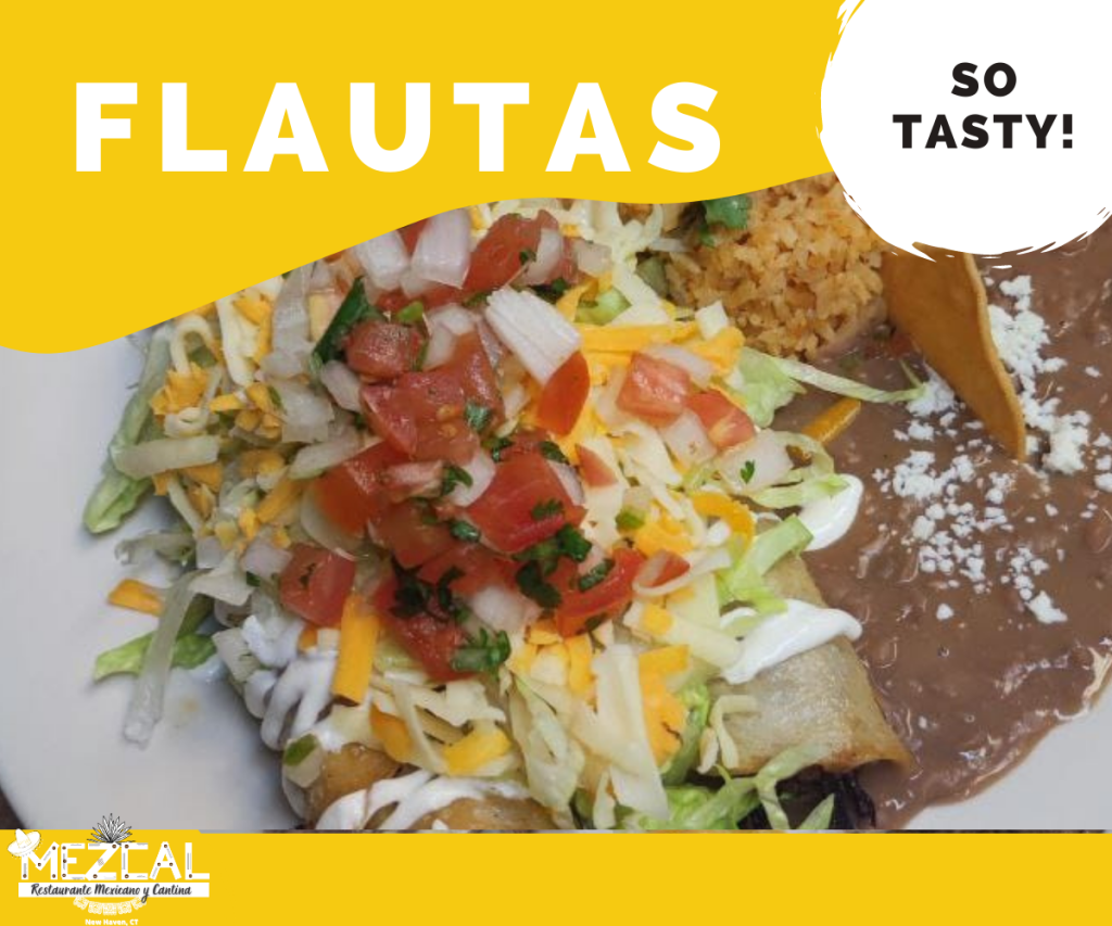 Three corn tortillas stuffed with chicken, vegetables or beef, covered with green tomatillo sauce or red chile sauce or our wonderful mole sauce and topped with sour cream, lettuce, grated cheese and avocado.